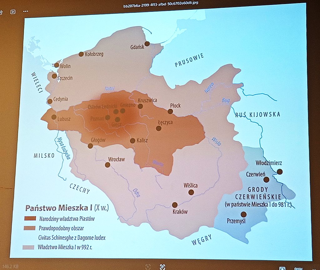 W czwartkowe popołudnie mieliśmy niezwykłą okazję wysłuchać bardzo ciekawego wykładu Pana Romualda Wojciechowskiego na temat twórców naszego państwa. Wykład rozpoczął się bardzo nieoczekiwanie. Poznaliśmy opinie archeologów na temat badań dotyczących neandertalczyka i chociaż kwestią dyskusyjną jest fakt pokrewieństwa z nami, naukowcy wciąż badają wykorzystując różne pojawiające się narzędzia i sposoby odkrywcze.
