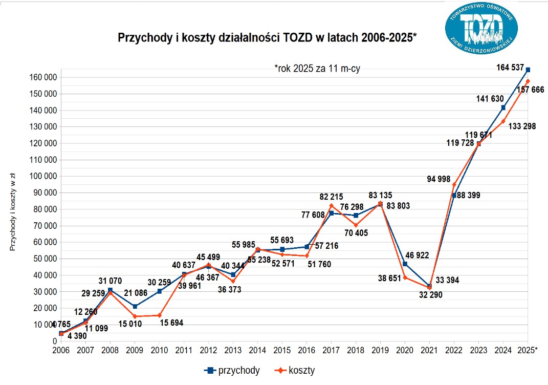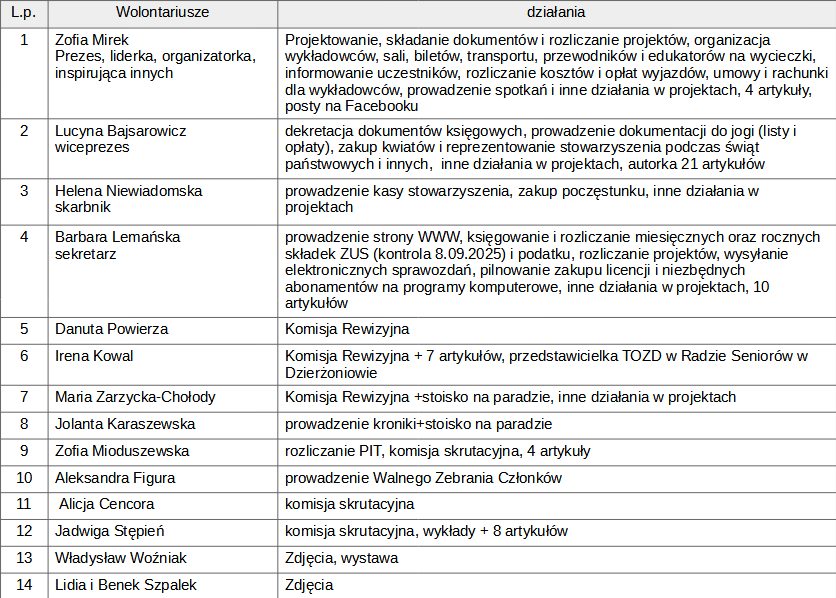 Rok 2025 był kolejnym rokiem intensywnej działalności TOZD. Do szczególnych wydarzeń w naszej działalności zaliczyłam:
