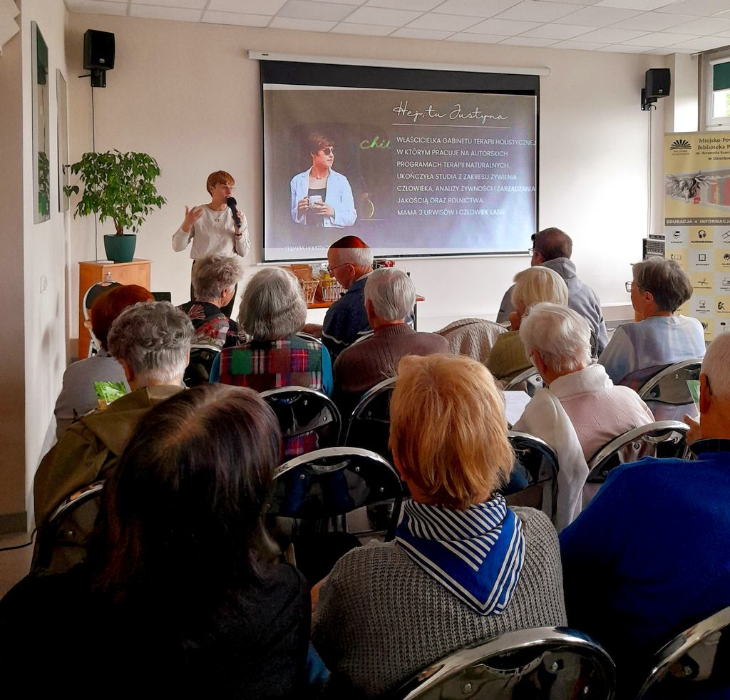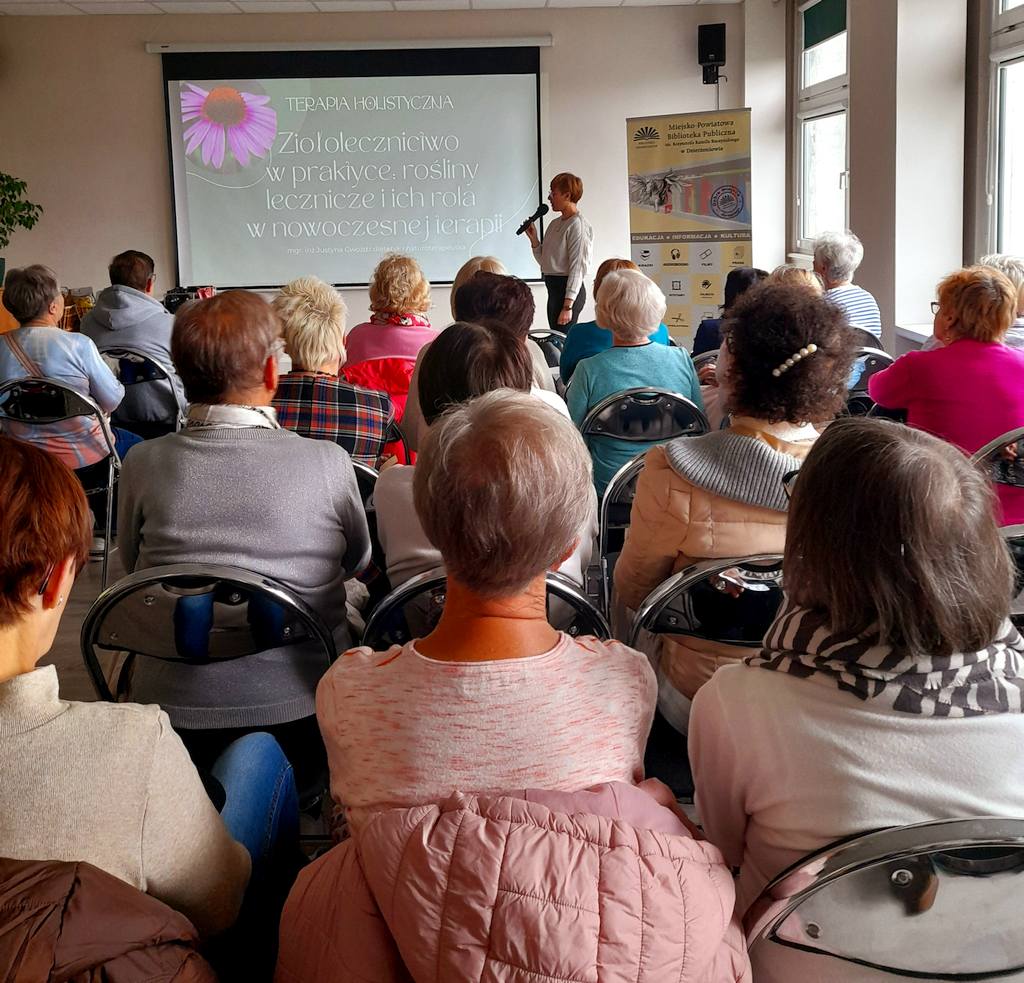 Za nami inspirujące spotkanie poświęcone roślinom leczniczym i ich miejscu we współczesnej terapii poprowadzone przez dietetyk Justynę Gwóźdź (Terapia holistyczna). Seniorzy licznie wzięli udział w wykładzie, podczas którego rozmawialiśmy o tym, jak mądrze i bezpiecznie korzystać z dobrodziejstw natury w codziennym życiu.