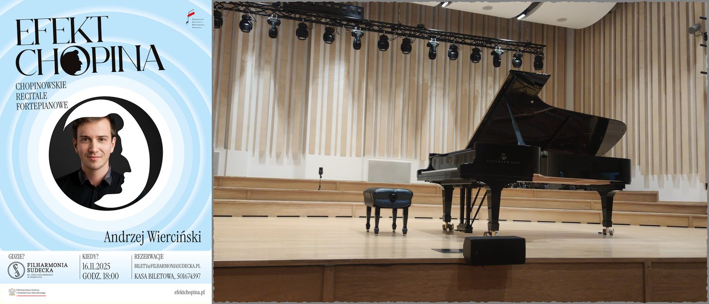 W niedzielę, 16 listopada 2025, na scenie Filharmonii Sudeckiej wystąpił Andrzej Wierciński – pianista o międzynarodowej renomie i imponującym dorobku. Był to ostatni koncert uczestników XIX Konkursu Chopinowskiego, które odbywały się w ramach cyklu „Efekt Chopina”, realizowanego przez Narodowy Instytut Fryderyka Chopina we współpracy z Filharmonią Sudecką.