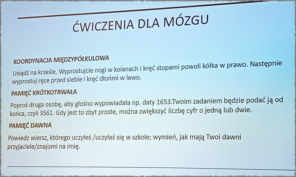 W ramach projektu „Dbam o zdrowie” 20 listopada wysłuchaliśmy bardzo ciekawego wykładu psycholożki Karoli Koteckiej-Koba o gimnastyce neuronów.