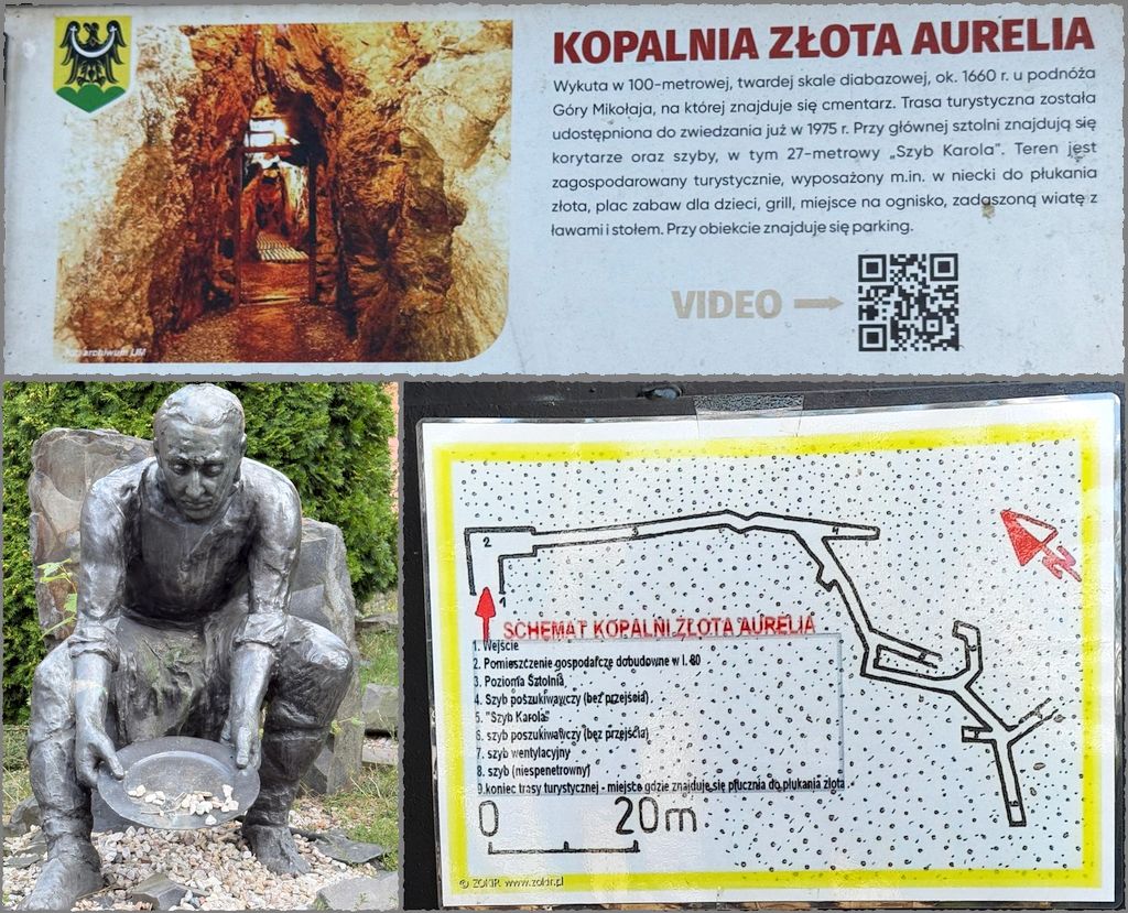 Jednak historia miasta jest ściśle związana z cennym kruszcem, który był tu wydobywany już od XIII wieku, stąd pierwotna nazwa miasta brzmiała „Mons Aurum”. Pozostałością po wydobywaniu złota w postaci rudy jest dzisiejsza Kopalnia Złota Aurelia - około 100 metrowa sztolnia z XVII wieku udostępniona do zwiedzania od 1973 roku. Sztolnia została wykuta w twardej skale diabazowej, na której widoczne są liczne nacieki rudy żelaza. Od głównego chodnika odchodzą boczne korytarze oraz szyb wentylacyjny zamieszkały przez nietoperze.