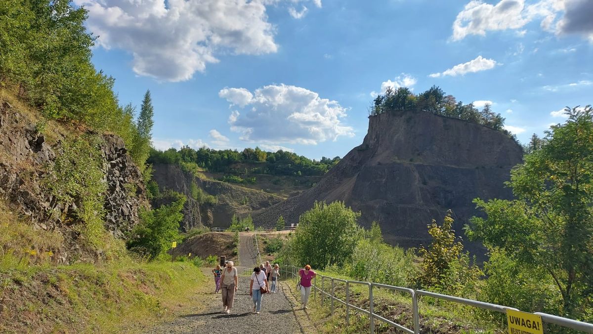 Ostatnią atrakcją tego dnia było wejście do rezerwatu geologicznego zwanego Wilczą Górą. Z punktu widokowego podziwialiśmy bazaltowe wzniesienie Wilkołak, który jest jednym z symboli Krainy Wygasłych Wulkanów. Odkryte słupy bazaltowe jednoznacznie świadczą o wulkanicznej przeszłości wzniesienia a ich wiek został określony na około 20 mln lat. W obecnej postaci Wilkołak jest wyrobiskiem nieczynnego kamieniołomu ukazującym przekrój fragmentu dawnego komina wulkanicznego.