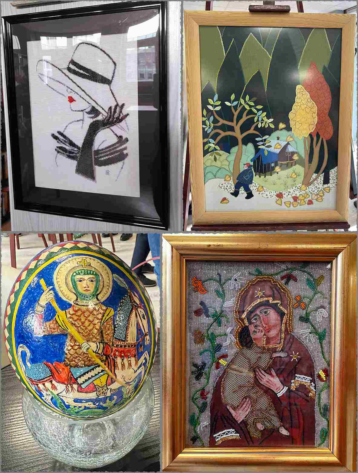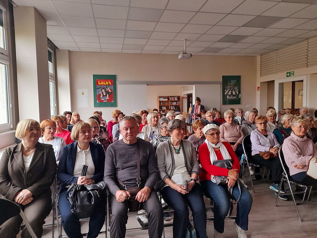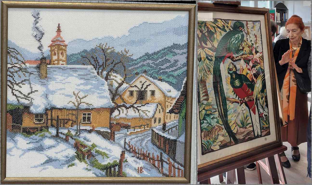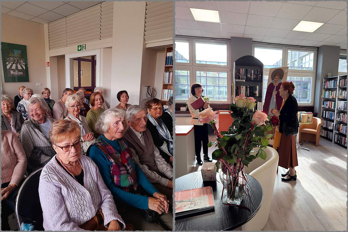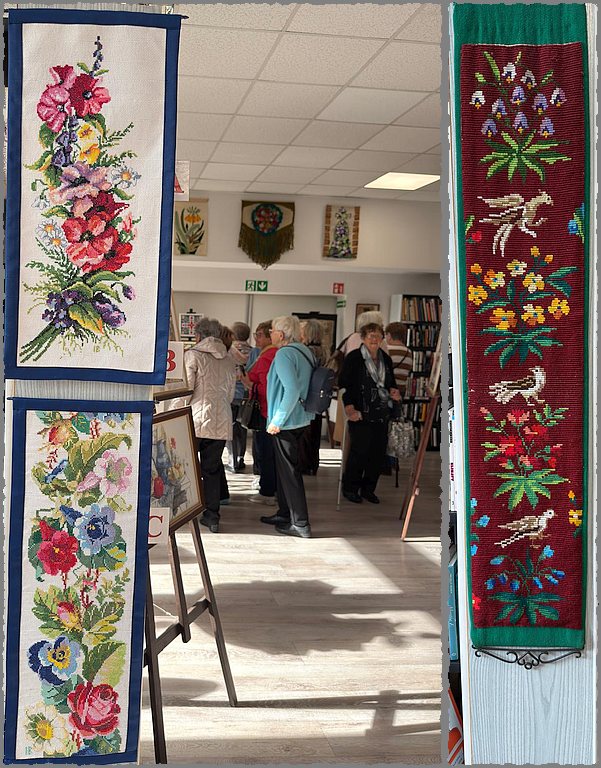 A spotkanie uświetniła pięknie zorganizowana (wśród regałów z książkami) wystawa dzieł autorki potwierdzająca jej aktywność twórczą i perfekcyjne opanowanie warsztatu.