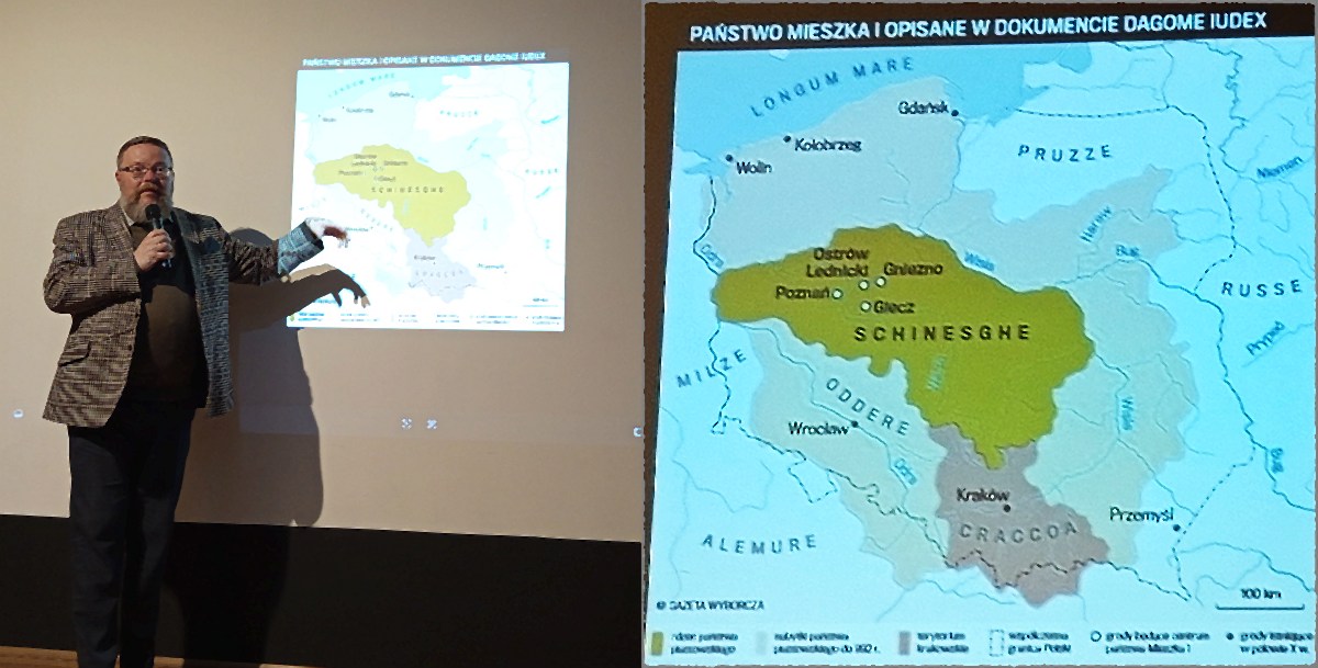 W czwartkowe popołudnie mieliśmy niezwykłą okazję wysłuchać bardzo ciekawego wykładu Pana Romualda Wojciechowskiego na temat twórców naszego państwa. Wykład rozpoczął się bardzo nieoczekiwanie. Poznaliśmy opinie archeologów na temat badań dotyczących neandertalczyka i chociaż kwestią dyskusyjną jest fakt pokrewieństwa z nami, naukowcy wciąż badają wykorzystując różne pojawiające się narzędzia i sposoby odkrywcze.