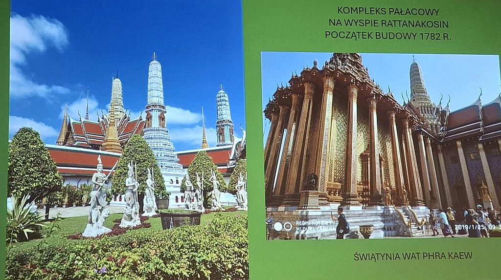 Wykład wygłoszony 4 grudnia to subiektywny zapis – impresja moich dwóch podróży odbytych z przyjaciółmi do Tajlandii, Kambodży i Laosu. Przy organizowaniu obu wypraw nie korzystaliśmy z usług żadnego biura podróży. W dobie Internetu samodzielna rezerwacja noclegów czy zakup biletów autobusowych jeszcze w Polsce nie jest trudne, choćby przez portal 12 Go. Planując wyjazd staraliśmy się, aby trasa była urozmaicona, dlatego na liście miejsc do zobaczenia znalazły się i zabytkowe miasta z licznymi świątyniami i cuda Natury. Nie zabrało też czasu na odwiedzanie miejscowych nocnych targów, poznawanie lokalnej kuchni oraz na relaks nad morzem.